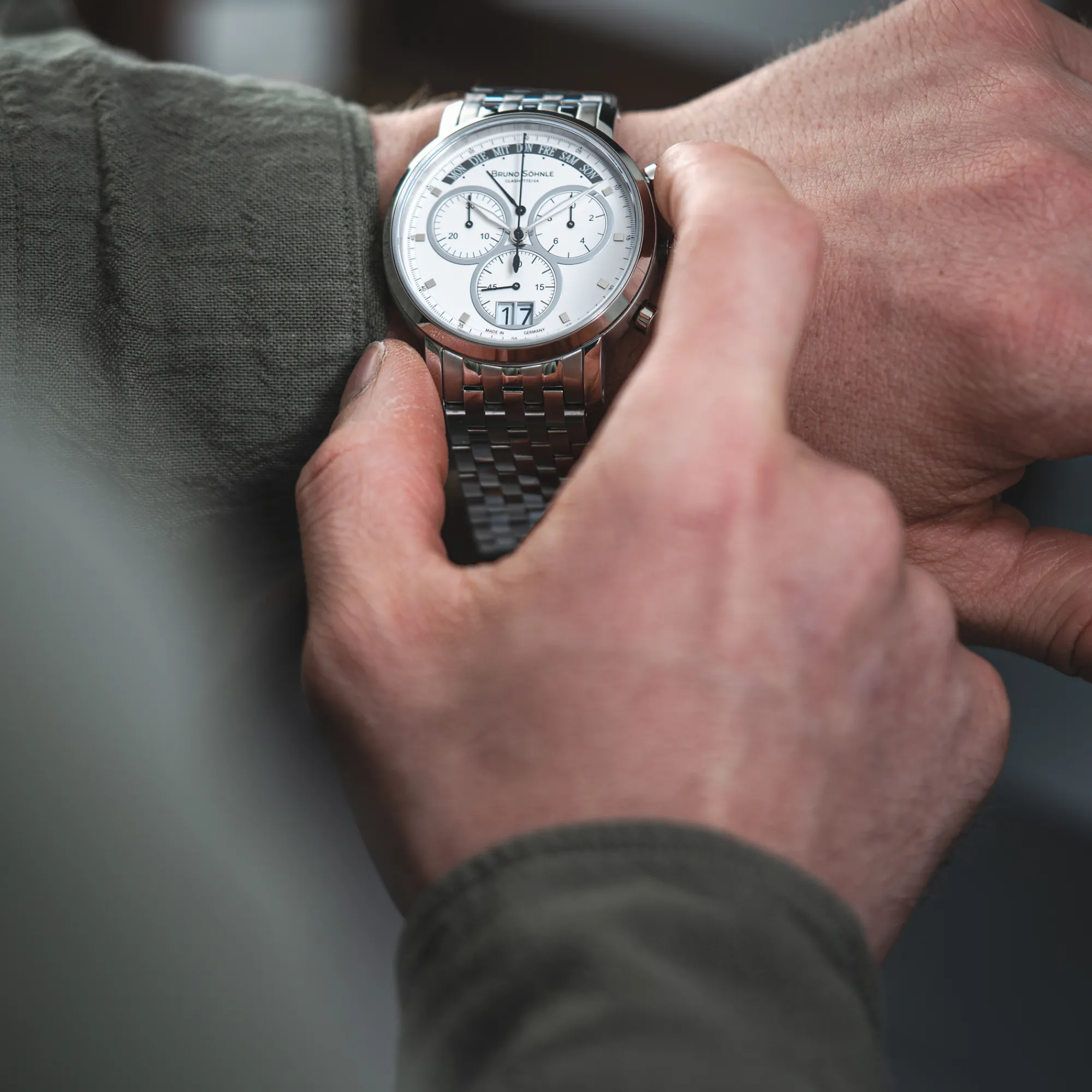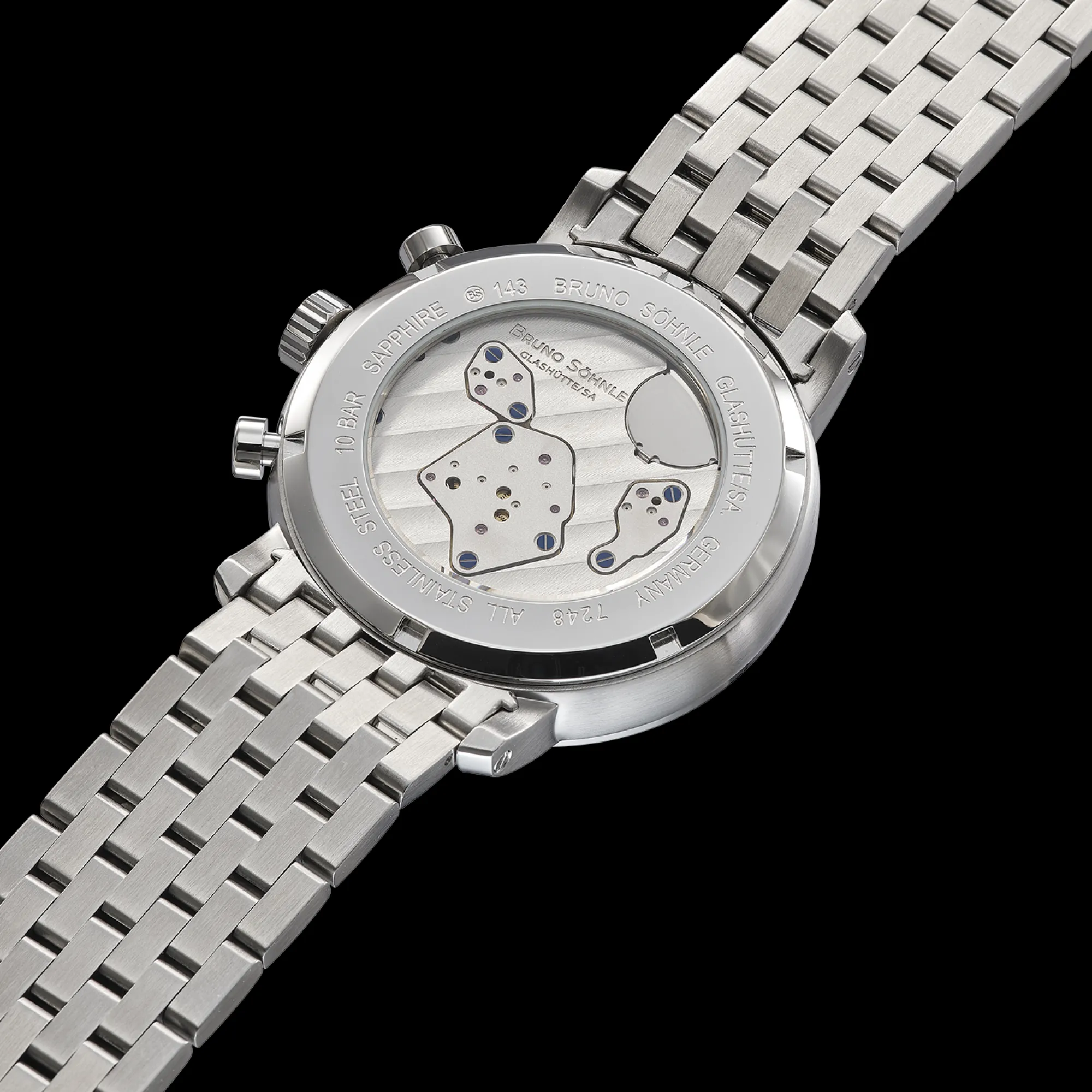 Quarzwerk In Veredelter Bruno Sohnle-Ausfuhrung (Basiswerk Ronda 8040.N), Edelstahl, O 44,0 Mm, Hohe 12,0 Mm, 10 Bar, Saphirglas Innen Entspiegelt, Edelstahl, Faltschliese