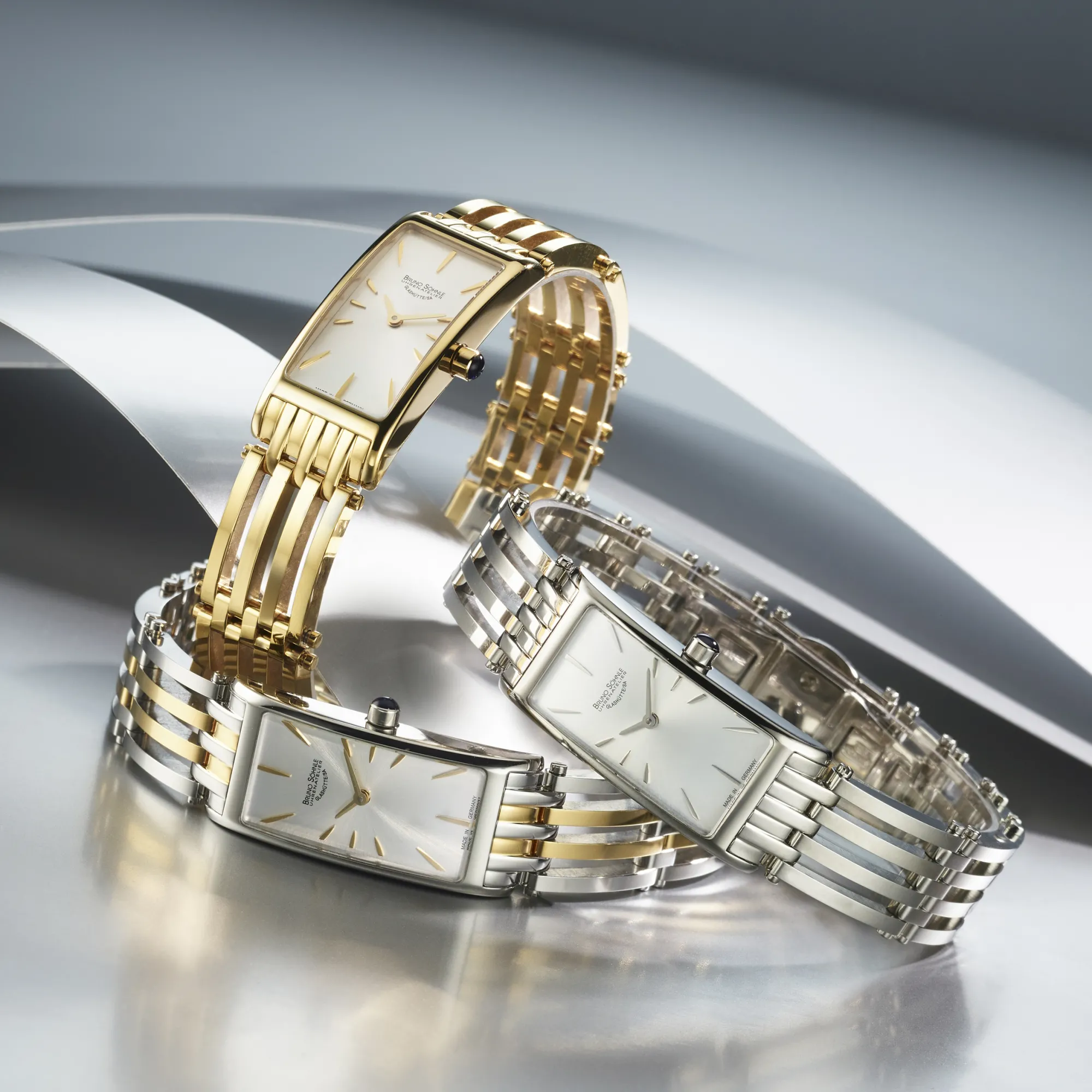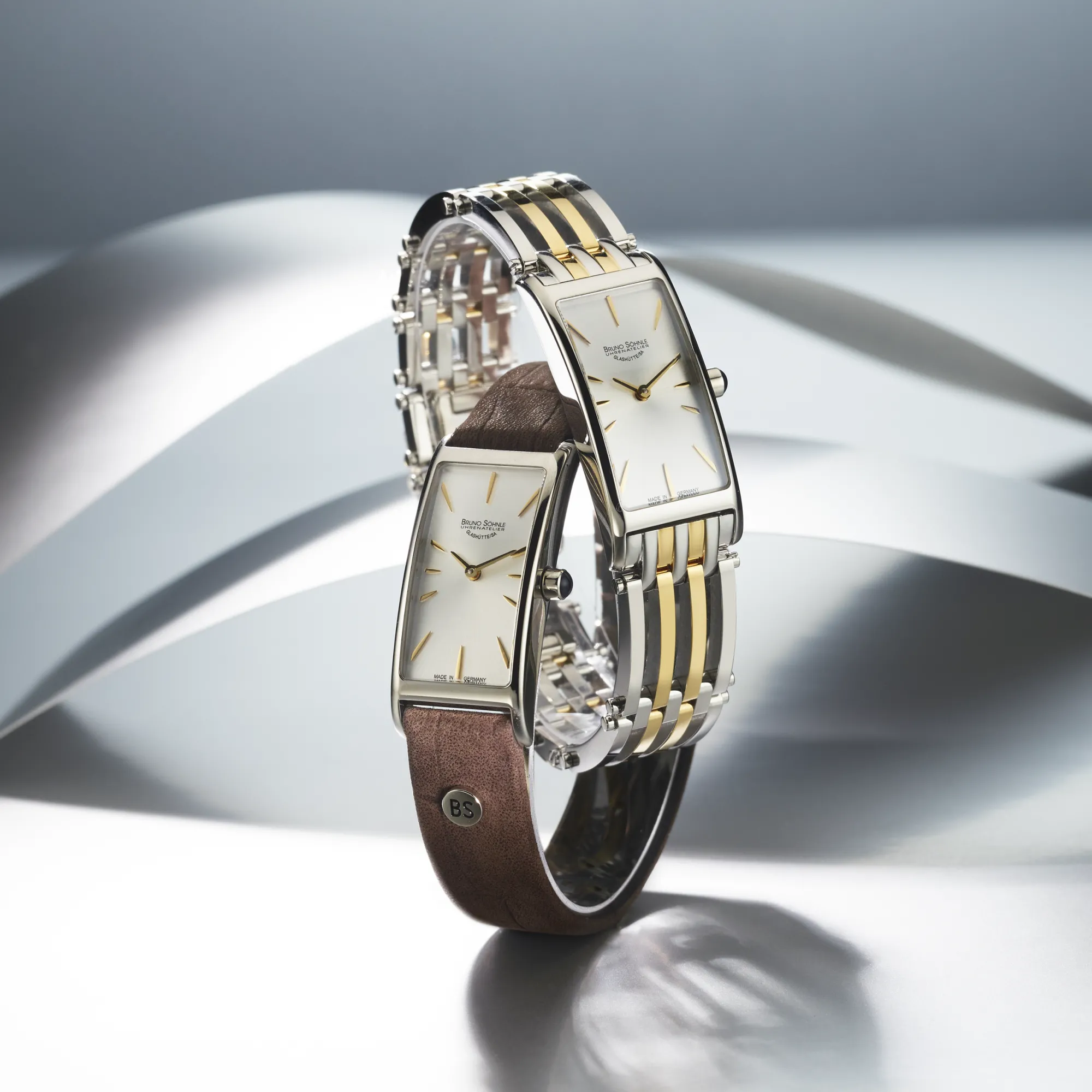 Quarzwerk In Veredelter Bruno Sohnle-Ausfuhrung (Basiswerk Ronda 751), Gehause Edelstahl, Zifferblatt Silber, Mase 17,0 Mm X 38,0 Mm, Hohe 7,1 Mm, 3 Bar, Saphirglas Innen Entspiegelt, Metallband Edelstahl Bicolor Ip Gold, Faltschliese